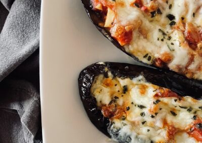 Voici une recette qui sent bon l’été dans l’assiette ! 😎 Très facile et rapide à réaliser, je vous présente ma recette d’aubergines façon bruschetta : sauce tomate, mozzarella et basilic sont au rendez-vous de ce plat léger de saison !
